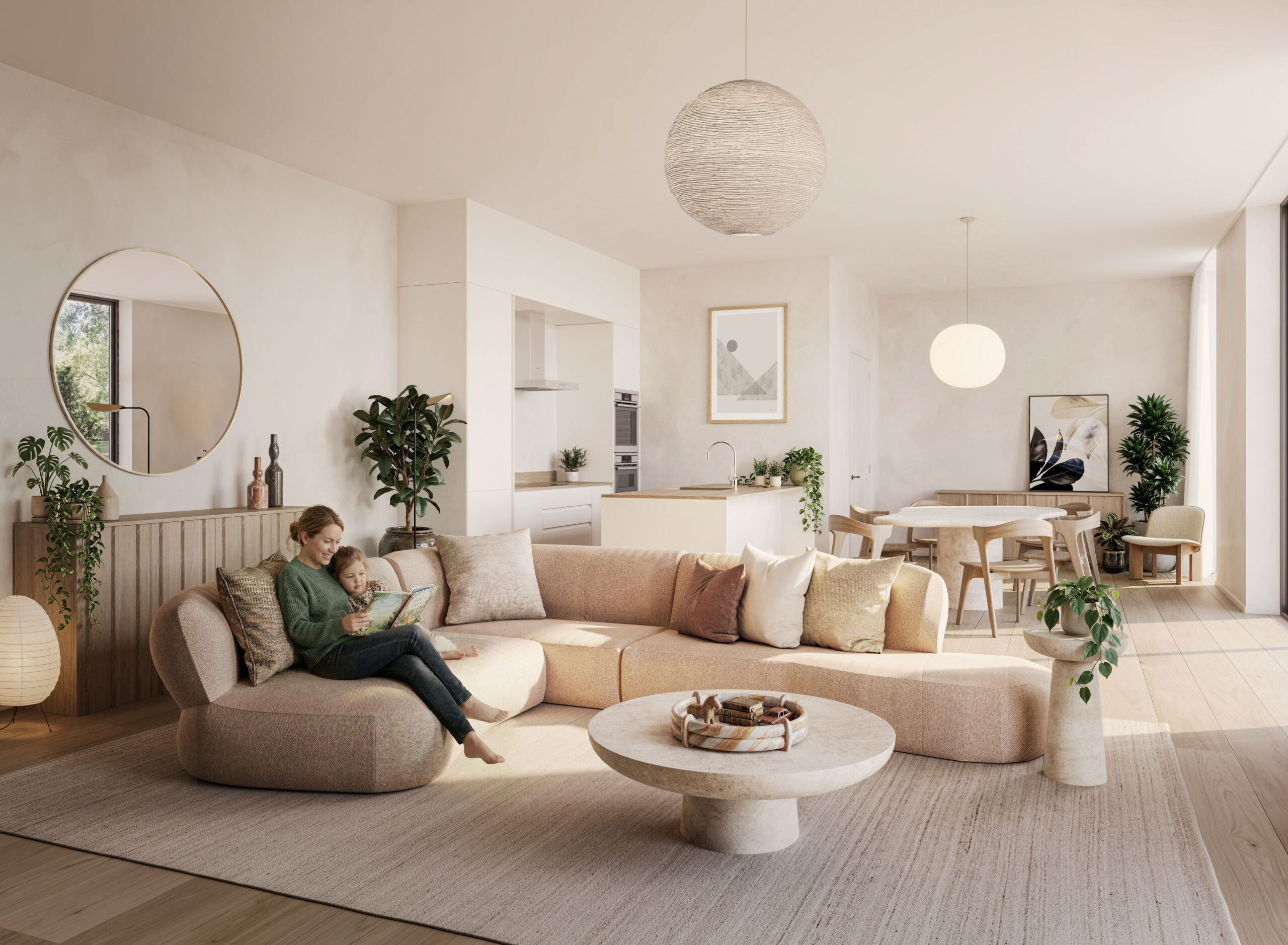 Spacieux et traversants, les appartements 2 chambres profitent de terrasses généreuses, véritables extensions des pièces de vie.