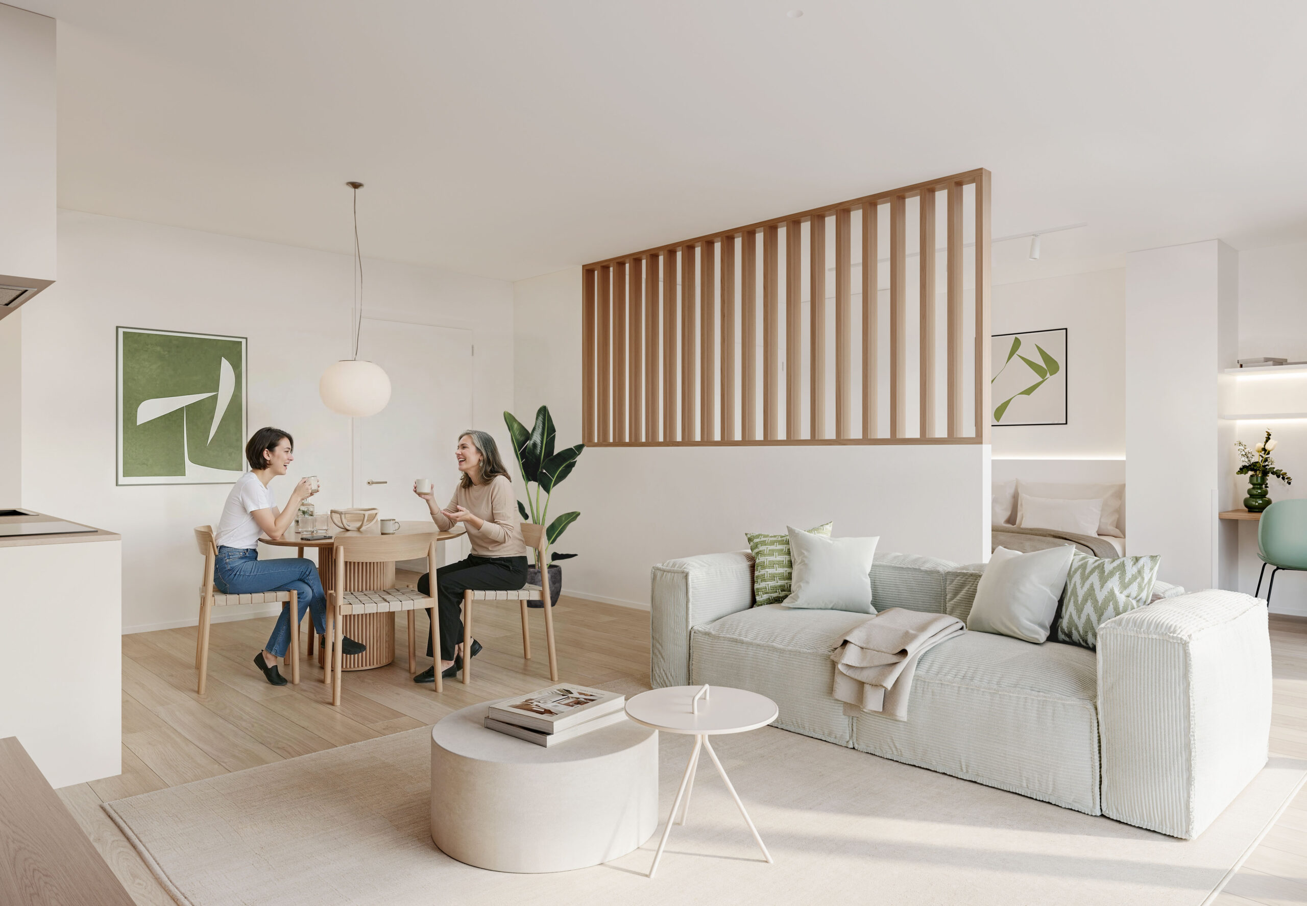 Les studios d’Helvetica sont conçus pour offrir un maximum de confort dans un espace optimisé. Chaque unité bénéficie de grandes ouvertures vers l’extérieur – terrasse orientée ouest ou jardin privatif au rez-de-chaussée.